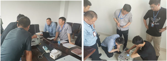 最后雙方技術人員進行了詳細的交流,在此期間,國高電氣技術人員還為大家現場演示了最經典的黃金搭檔:高壓側DCM635無擾動切換配合低壓側DCM621抗晃電模塊的方案,萬達集團技術人員直觀地感受到解決方案的效果。