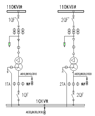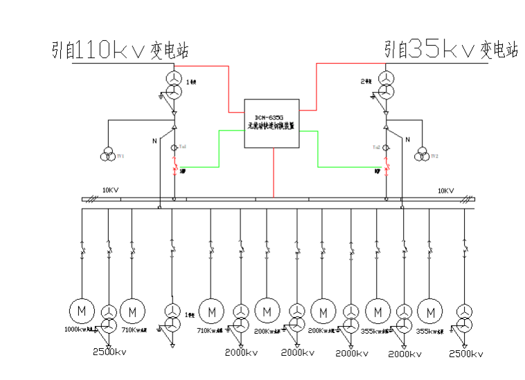圖中,來自“110KV變電站”簡稱為進線一,來自“35KV變電站”簡稱為進線二。