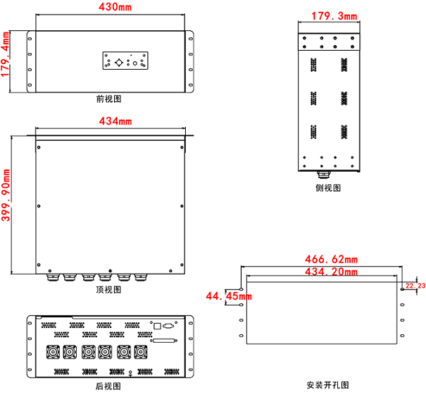 該機(jī)型為19英寸標(biāo)準(zhǔn)機(jī)箱設(shè)計(jì),可以安裝在機(jī)柜的前面板或者內(nèi)部,這取決于機(jī)柜固定邊的位置和場(chǎng)所。